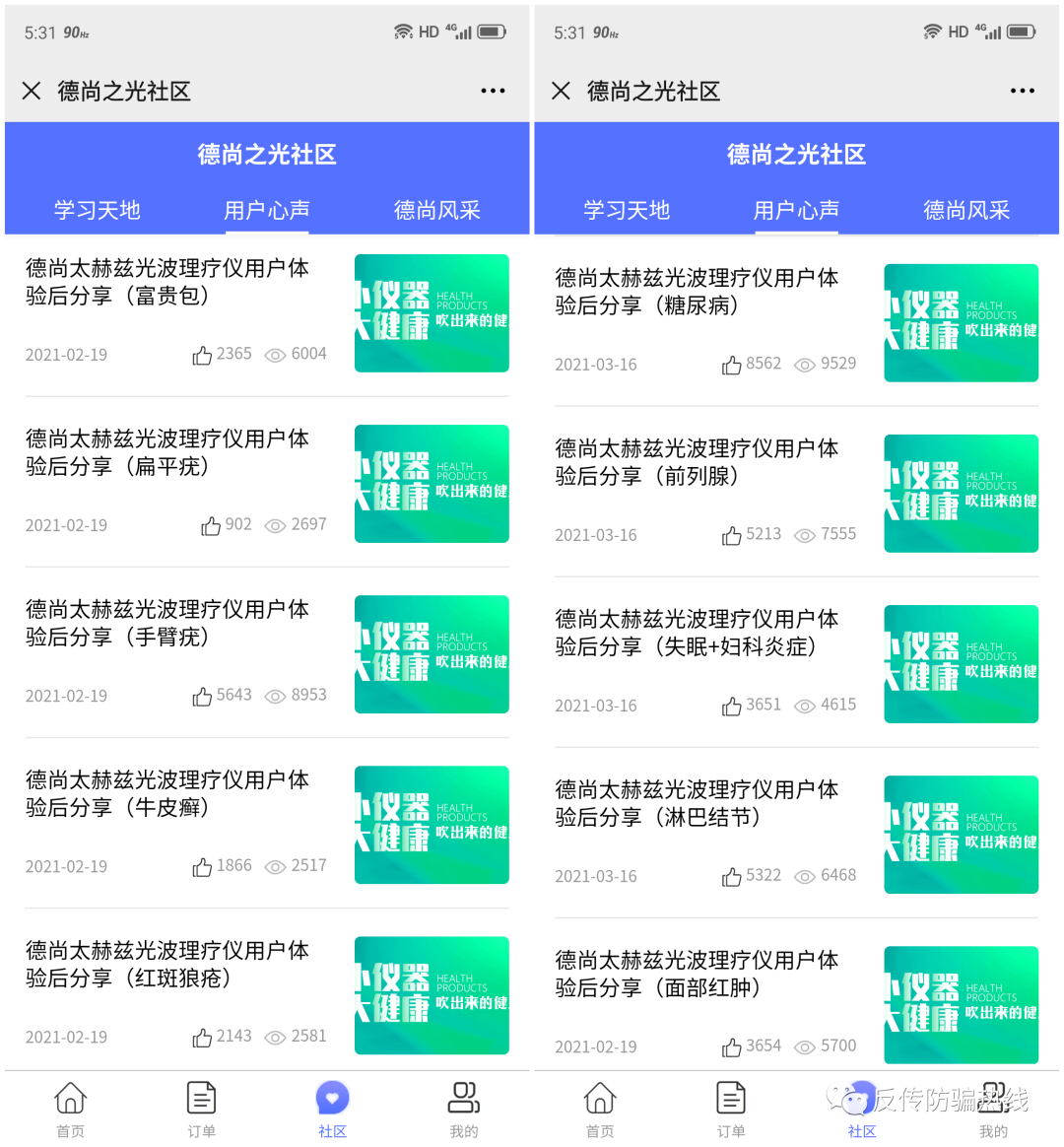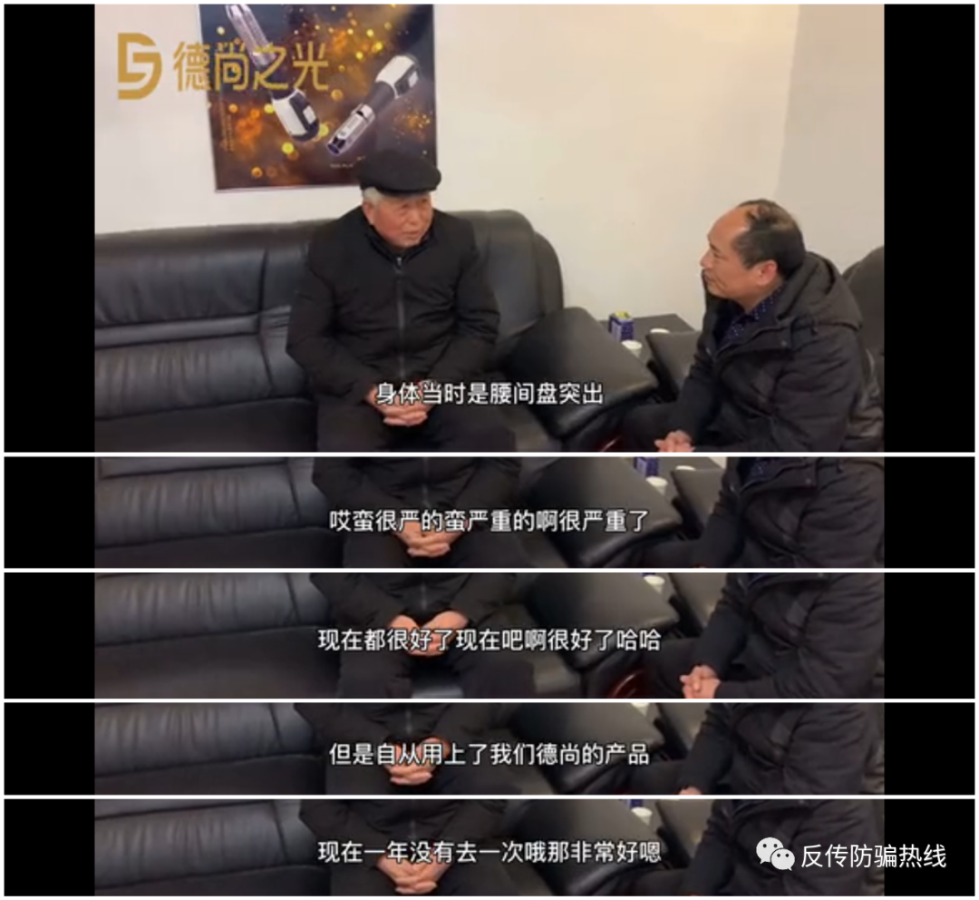 此销售人员给小编发来很多“用户治疗好”的视频。其中有皮肤病因为吹了太赫兹光灸仪好了、患有风湿病十余年的患者用了太赫兹光灸仪治愈了、面瘫一年多,使用德尚太赫兹光波理疗仪一周后变好了等。