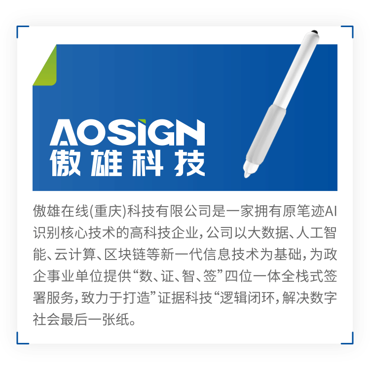 摘要:一直以来,傲雄科技以大数据、人工智能、云计算、区块链等新一代信息技术为基础,在原笔迹电子签名技术、产品创新等方面,走在行业前列。