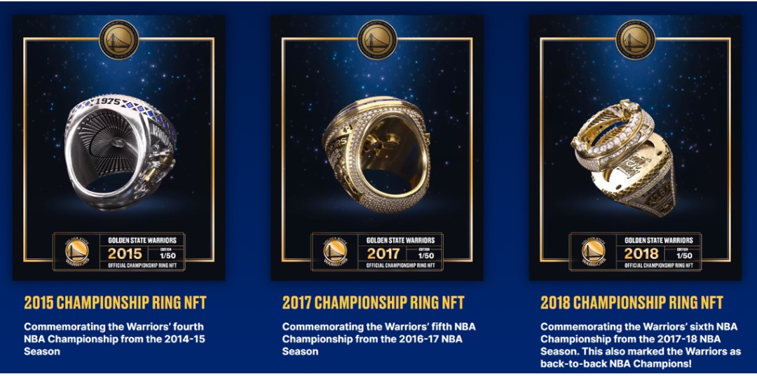勇士队推出的总冠军戒指NFT,图片来自金州勇士官方