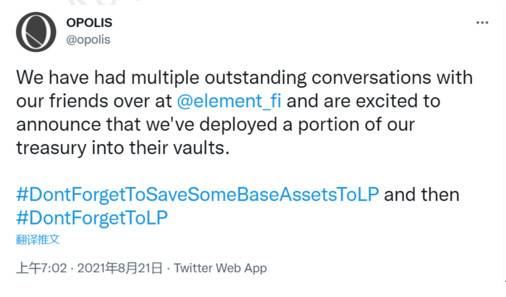 而 Element 则嗅到了这其中的巨大潜力:因为对于绝大多数协议和 DAO Treasury 来说,用 DeFi 进行资产管理仍然不是其长项,而这是一个巨大的增长机会。所以 Element 正努力开发这个新兴用例,帮助其他协议来简化财务管理。