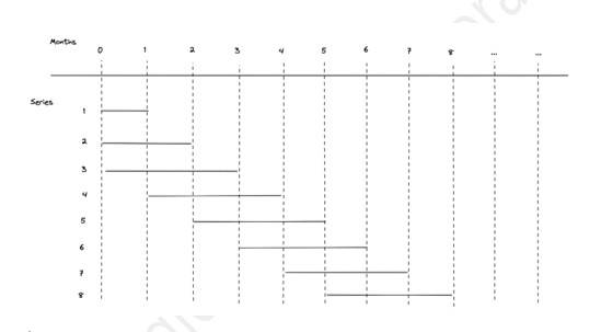 Sense 中 Target 的期限结构由给定 Target 的所有 active series 组成,其形式由 Sense Governance 可配置的参数来定义。在存在无限流动性的理想世界中,标的资产的期限结构并不需要受到任何限制,用户可以自由地与收益率曲线上的任何市场交互。但是在项目发展的早期,Sense Finance 并没有那么理想的流动性条件,因此在没有这种情况下为了缓解流动性分割(liquidity segmentation),Sense V1 版本将会设置如下的限制: