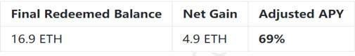收益 13.02 ETH + 本金 3.87ETH = 总计为 16.9ETH