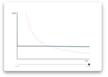 PendleAMM曲线随时间变化而变化曲线移动会人为地将时间衰减代币的价格降低。曲线移动的行为由随时间衰减的定价模型来控制,而这一模型受债券或期权定价模型启发而来,而且,在合同期限内价值降低的速度趋于加快。