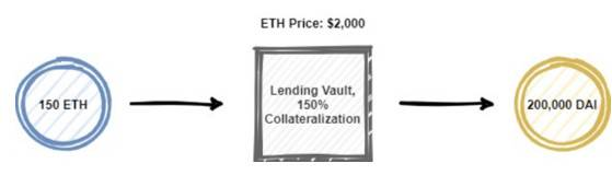 用户现在可以按自己想要的任何方式利用其 148.5 ETH——这些 ETH 没有被锁定;用户也没有清算风险,现在可以在任何平台上抵押他的 148.5 ETH,从而获得收益以弥补跌幅。获得的额外 100,000 个 DAI 的收益敞口,是他遵循传统路线得不到的。