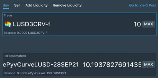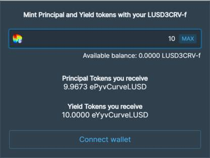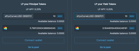 用 Curve lp 代币直接买 PT 或者 YT。(这里能看到,10 个 lp 代币可以买到超过 10 个的 PT,也就是等于购买了协议的固定利率产品)