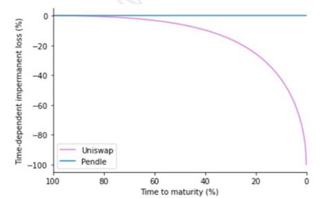 与时间有关的无常损失(PendlevsUniswap)关于 Pendle 代币与 (Pe,P)