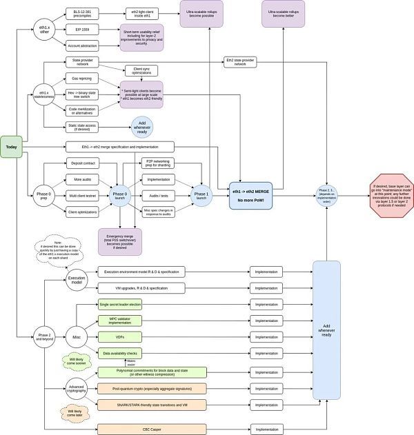以太坊联合创始人V神(Vitalik Buterin)制定了一份路线图,说明未来五到十年如何实现ETH2.0。