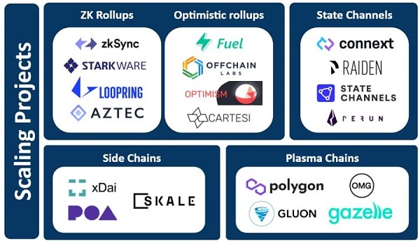Layer2有几种解决方案:侧链、状态通道、Plasma、Rollup卷叠方案。都可以为区块链容量提供复合收益(但以太坊社区已经将Rollups作为扩展网络的最有前途的方式,虽然其它Layer2的解决方案在安全性或去中心化方面接受重大折衷后可以实现可扩展性,但Rollup接受一些中心化而不牺牲去信任化)