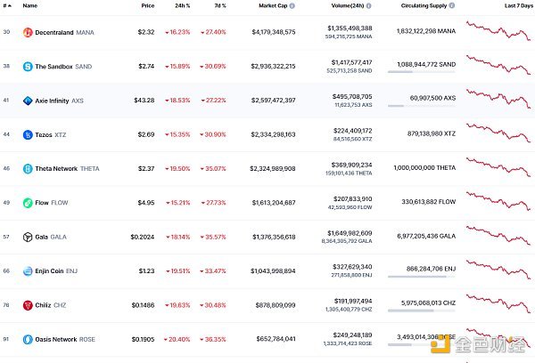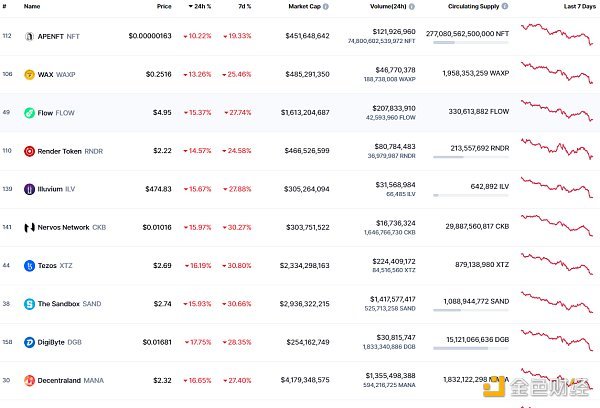 NFT总市值、市值排名前十项目 数据来源:coinmarketcap