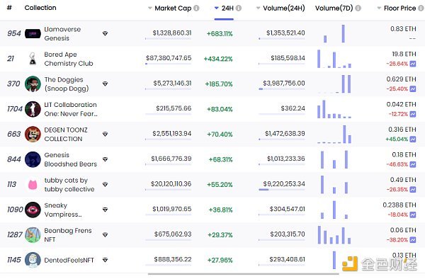 24小时内销售涨幅前十的NFT 数据来源:NFTGO