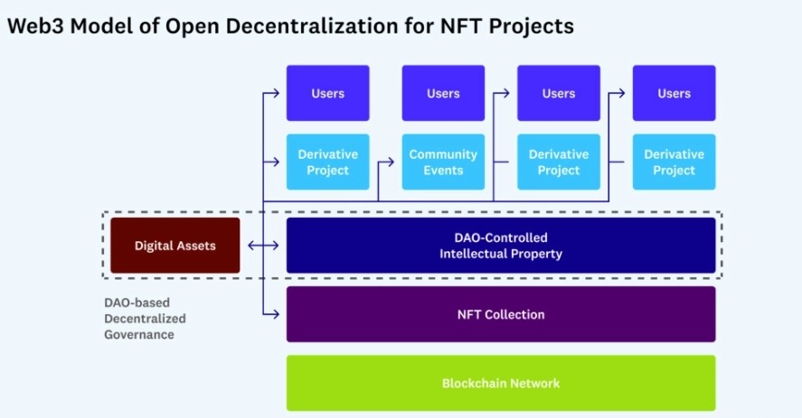 但是,在这种情况下,NFT 场景中的知识产权可能会促进而不是阻碍社区的整体去中心化。为什么?因为知识产权是从分散的来源(NFT 持有者)贡献给 DAO 的。此外,如果 DAO 要控制代币的分配、NFT 的额外铸造和去中心化的知识产权——以及去中心化的收入流(来自特许权使用费或衍生项目)——该系统不太可能产生严重的信息不对称。
