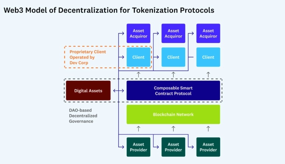 标记化协议是另一种新兴的 web3 系统。在这些系统中,资产被载入区块链,通过智能合约协议进行标记,然后出售或用于其他目的。代币化协议的类型包括串行 NFT 铸造项目、数字资产市场和代币化现实世界资产的协议。