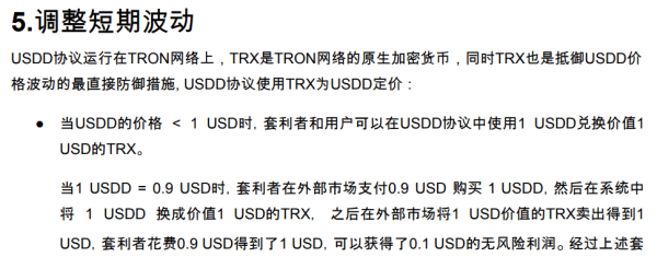 USDD稳定性的保障一方面来源于其与TRX进行锚定挂钩发行,由TRX吸收短期波动性;另一方面,当极端行业出现时,波联储的百亿美元高流动性资产储备也能够及时出手稳住USDD币价。