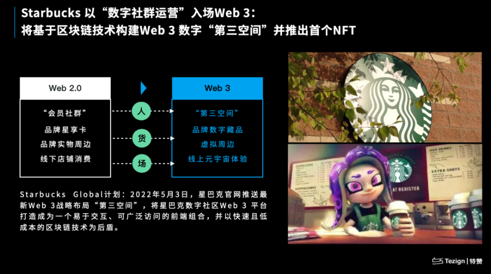 Starbucks,近期宣布入场Web 3 战略布局“第三空间”并将推出首个数字藏品项目