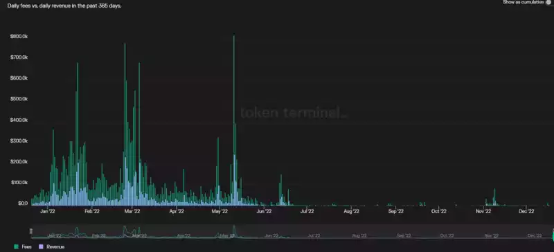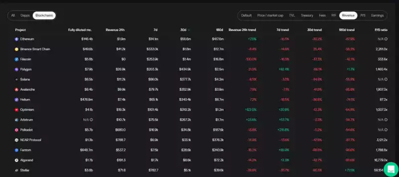 自 2022 年起,Fantom 收益和成本一直处于下跌趋势。现阶段她们好像已经趋于稳定,FTM 在区块链的 30 天收益中排第 12。