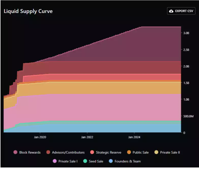 剩下来的 Token 主要是用于验证者和委托方建立区块链的奖赏。这种 Token 将继续派发,直至 2024 年 4 月,到时候全部质押贷款奖赏将终止。