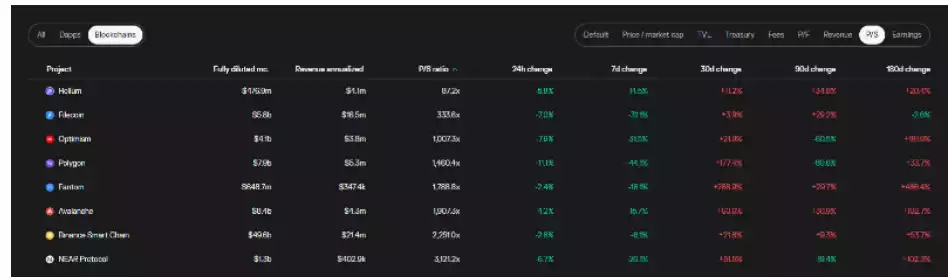 假如看一下 P/S 比例(彻底稀释液总市值 / 年化利率收益),Fantom 是第五大被忽视的区块链。