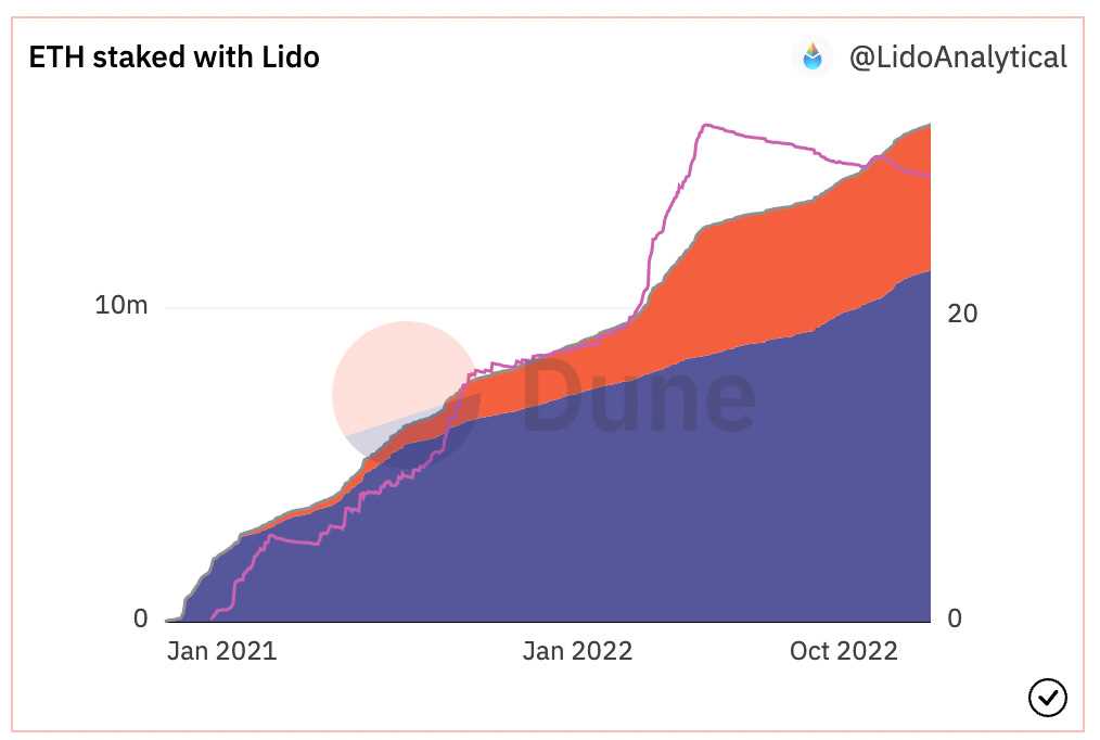 Lido: 从客户质押贷款盈利提成 10% 做为协议收入,5% 给连接点 5%进到财政。Lido 锁单的ETH在持续增长,在 3AC 事件之后因为 stETH挂钩,增长速度和市场份额均略微降低,但是仍保持在 30% 上下的市场份额。Lido 的 ETH 保守主义计费收入基本上不会受到市场行情危害,所以现在不但花费超过 Uniswap 变成第一,协议收入也位列头顶部。预估来年3月的 ETH 上海市更新对外开放 unstake,可能给流动性质押贷款跑道产生新一轮大转变和挑战。