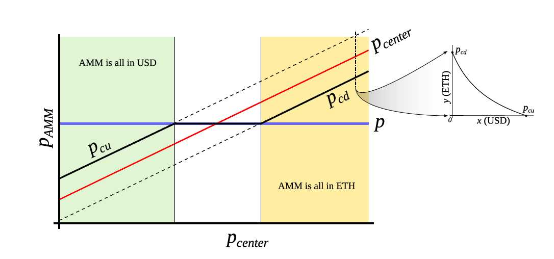 ETH 价格下挫,LP 交易头寸就逐渐卖 ETH 买 USD;ETH 价格增涨,LP 交易头寸就逐渐卖 USD 买 ETH。这根本和 UNI V3 LP 相反了,UNI V3 ETH/USD LP 会到 ETH 价格下跌时 LP 内 ETH 越大。