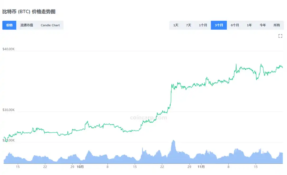 由于近一个多月以来,比特币价格从 25000 美元强势走高到 38000 美元,涨幅超过 50%。这一涨幅趋势足以在短期内吸引市场目光,不论是专业投资机构还是大量散户或是投机玩家,都有大量的资本进入 BTC 生态赛道。