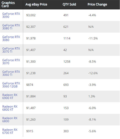 市调机构JPR判断,今年一季度就有大约70万张显卡流入矿工手中,占当季显卡总出货的25%,金额大约5亿美元。目前,在一些平台上,3090显卡价格基本在18000-22000元之间,降价了2000-5000元不等;3080显卡价格基本在13000-16000元之间,降价了2000-4000元不等。