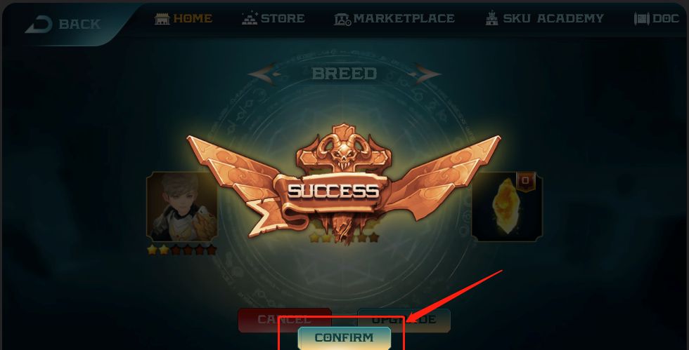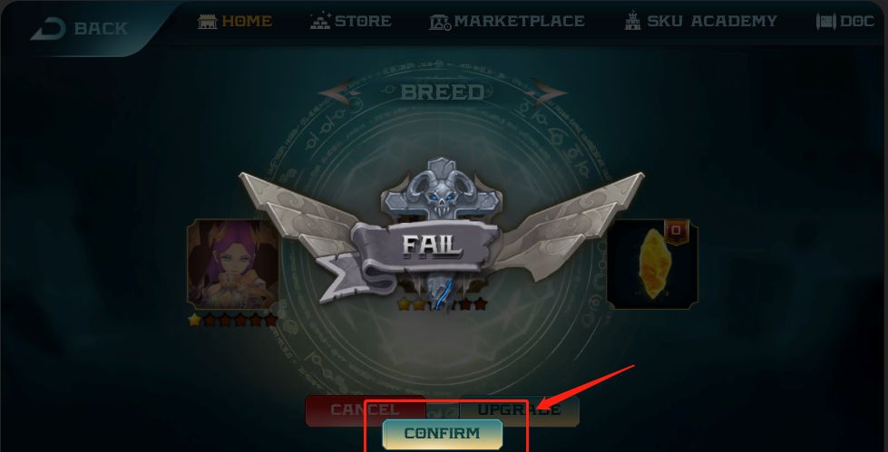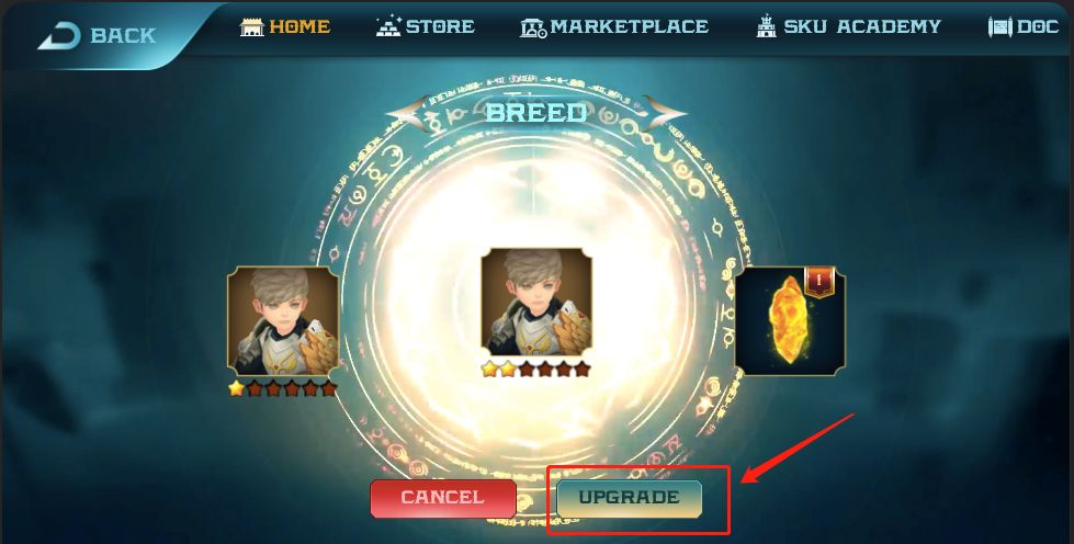 2.在背包中,找到需要升级的STUDENT(必需处于FREE状态,在SKU ACADEMY中放置的STUDENT需要先退出矿池),进入STUDENT的详情页,点击(UPGRADE)按钮,进入升级页面