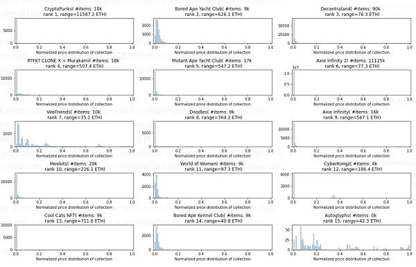 通过对不同系列 NFT 的观察,我们看到了以下这些价格分布形态: