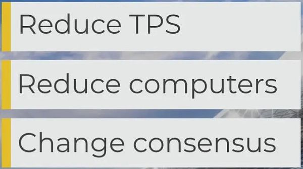 为了让我们的虚拟加密货币网络保持运行,我们必须减少系统每秒能够处理的交易数量。减少连接到网络的计算机数量,或者改变共识机制,让每笔交易需要更少的计算机来确认。