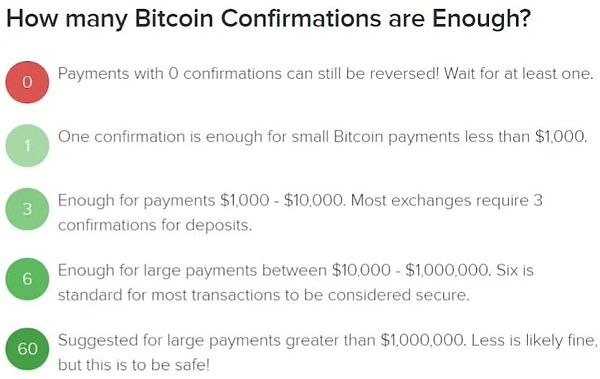加密货币交易所总是希望在给用户的账户授信前确保交易是最终的,每次确认后,交易是最终的可能性通常都会增加。