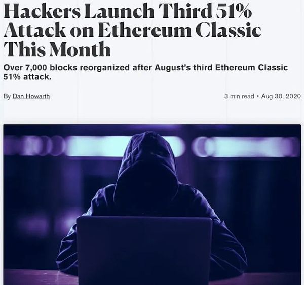 这是因为ETC在过去曾多次遭受51%的攻击,本质上是网络被矿工操纵,将加密货币计入他们的账户中。