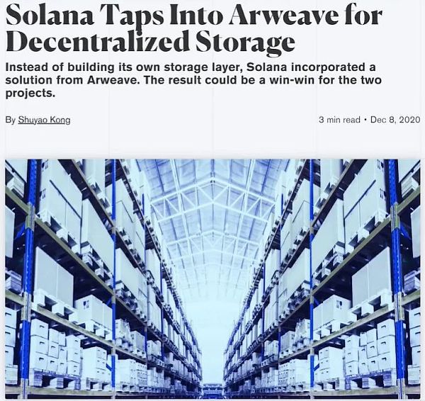正如我前面提到的,这严重威胁到它的去中心化。现在,Solana针对这种指数级增长的解决方案是将其数据存储外包给一个名为Arweave (AR)的去中心化存储加密货币项目。