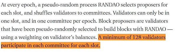 据我所知,以太坊2.0上的每个分片在任何时候都只有大约128个验证器。这些将根据他们质押的 ETH 数量伪随机选择。
