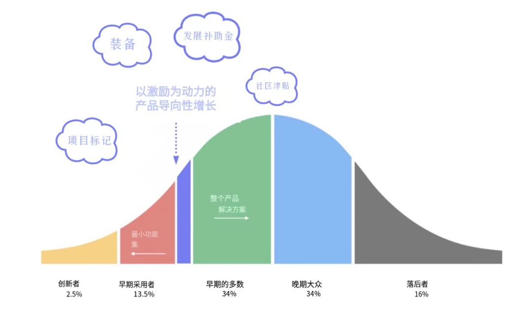Web3.0通过以激励为动力的产品导向型增长,弥合了上述“鸿沟”。对早期采用者、长期持有者和开发者的激励和奖励支撑了行业的指数级增长。