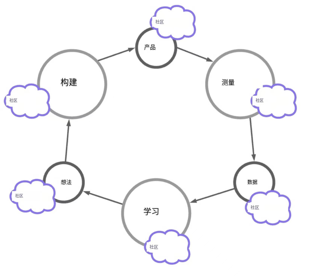 我详细阐述了常见的构建、测量和学习循环,以强调社区在流程中每一步的重要性。