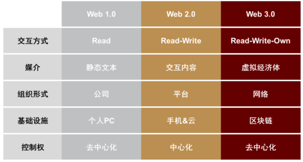 图表:Web1.0、Web2.0、Web3.0的性质对比