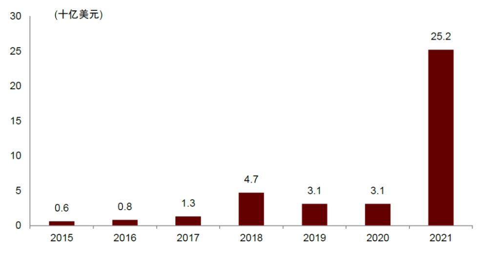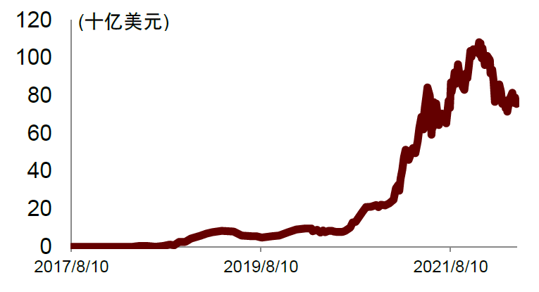 资料来源:CNBC,Coindesk,TripleA,Meta,Exploding Topics,Dune,中金公司研究部注:时间截止2021年12月31日