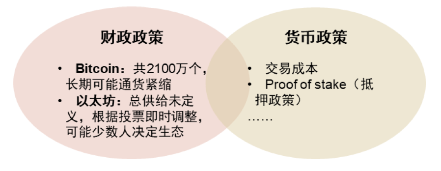 在DAO社区中决策机制通常分为链上和链下。Smart Contract只能执行现有代码,而DAO需要持续更新,这背后就需要一套决策机制,持续更新DAO的运行规则。链上决策就是指由成员提出议案,社区进行投票表决。按照区块链的性质,理论上链上决策才是唯一的路径,然而弱点是效率太低(需要经过区块链大部分节点同意),同时因为投票权掌握在Token更多的成员手中,容易引发中心化问题(事情本身是去中心化的,但是Token持有的份额导致了中心化)。针对链上效率低的问题,有时成员会进行链下决策——在其他社交平台充分讨论议案后进行决策,但缺点是讨论本身也可以被利益左右的人引导。作为一种完整的组织形式,DAO内部存在相对应的财政和货币政策。财政政策通常与代币的总供给相关,而货币政策通常与交易成本挂钩,而交易成本通常由主链TPS决定。