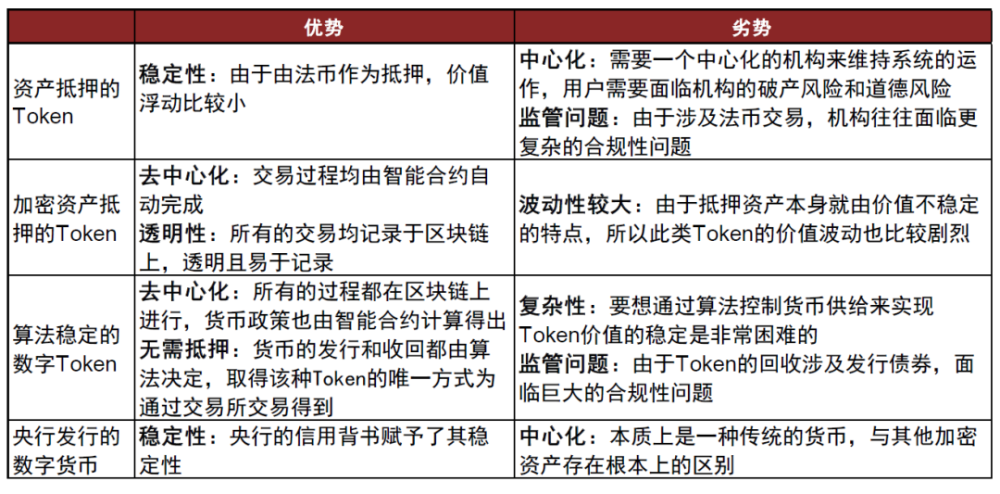 与传统货币相比,以比特币为代表的加密货币资产最大的问题就是币值波动较大,而稳定币则是通过一些特殊结构实现价值稳定的加密货币,从而为整个DeFi体系增加币值稳定的加密货币基础设施。按照不同的稳定结构,可分为央行发布的数字货币;资产抵押的稳定币(例如USDT,用美元做抵押物);利用加密资产做抵押的稳定币(例如DAI,用ETH做抵押);还有算法稳定币(例如UST)等。目前来看,抵押物是否充足、算法是否稳定等问题都是决定“稳定币是否真的稳定”的核心关键,仍有待完善。