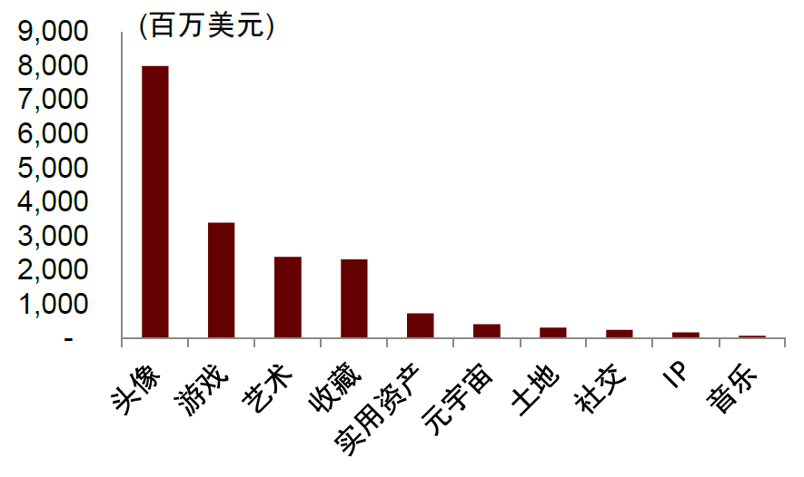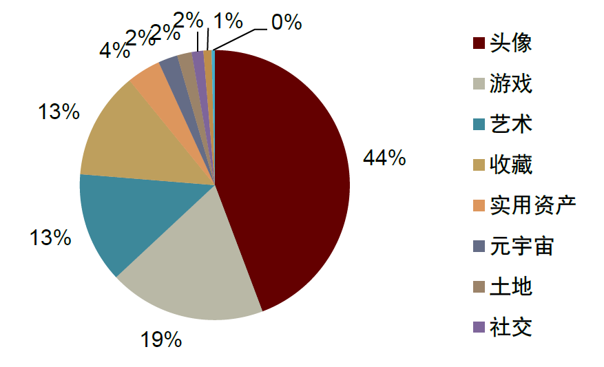 NFT市值超百亿美元,静态头像类NFT独占鳌头。NFT可以分为两类,静态NFT(头像、艺术品、收藏类NFT)与动态NFT(游戏、音乐类NFT)。其中,静态NFT交易额较为火爆,它对应相应资产的所有权和 Discord 访问权,但绝大多数都无法提供额外的实用价值;随着投资者逐渐倾向于追求通过所持资产获得更优质的体验,人们对非静态NFT的需求将不断攀升。根据NFTGO数据,截至2022年2月,NFT总市值已达180亿美元,其中头像类NFT市值占比最大(44.3%),市值高达80亿美元。