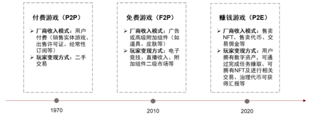 P2E——GameFi将融合游戏的趣味性和Token激励。游戏由于其受众大,且商业模式清晰自然成为了Web3.0应用首要开拓的领域。与传统游戏不同,Web3.0时代游戏,结合了NFT和Token,使得用户不仅仅在游戏中进行娱乐消费,还可以获得相应的数字资产,即P2E(Play to Earn)。与传统游戏相比,GameFi经济体系和趣味性平衡显得尤为重要。从发展阶段来看,目前GameFi仍处于初级阶段。2021年新生的区块链游戏中1200万美元以上的总收入仍不到10亿美元,与2021年全球视频游戏市场将达到1750-1800亿美元相比,这个数字仍旧较小。