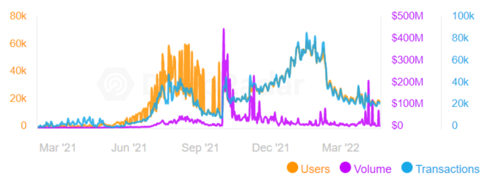 Axie Infinity是一款以区块链技术为背景、通过收集宠物进行战斗的集换式卡牌游戏(TCG)。此游戏于2018年诞生,由越南工作室Sky Mavis创立,开创了全新的游戏模式——Play to Earn。Axie Infinity是一个数字宠物世界,主角是类似于宠物小精灵的Axie,用户既可以通过收集、训练自己的Axie们来与其他用户的Axie战斗,也可以将其作为宠物抚养和交易。2022年2月,Dapp Radar数据显示,在Axie Infinity上出售的NFT总价值超过40亿美元,达到41.4亿美元;交易者数量超过190万,而销售的NFT平均价格为198.77美元。Axie Infinity成为仅次于OpenSea和LooksRare的第三大NFT市场。实际上,Axie Infinity突破性正在于其与前期GameFi经济性完全压倒趣味性基础上,在趣味性角度取得了一定突破。