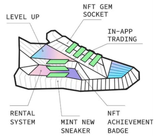 核心玩点:人人可用(通过游戏作为核心机制,STEPN可以促使数百万人拥抱更健康的生活方式);零准入门槛(STEPN并不要求人们先拥有NFT资产,反之,用户可在一无所有的状态下,先从其他用户处免费租借使用,再对收益进行分成。此举容易打开用户圈层);先学后赚(小白用户可以在搞懂如何使用去中心化钱包之前就通过游戏赚钱。)