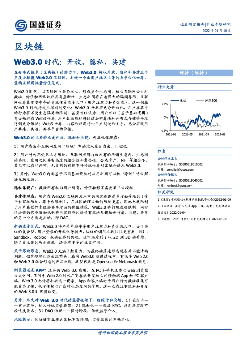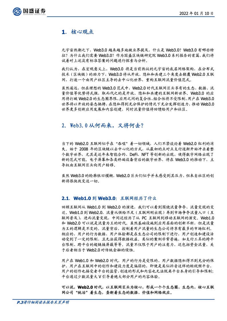 在分布式技术(区块链)的助力下,Web3.0 将从开放、隐私和共建三个角度去颠覆 Web2.0 互联网,打造一个由用户社区主导的去中心化世界,重构互联网流量价值范式。