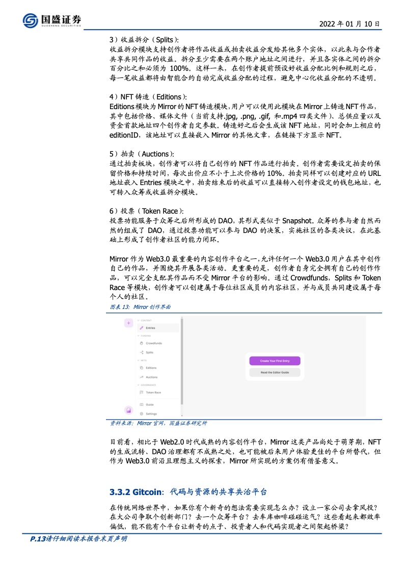 共建体现在:用户在 Web2.0 互联网应用中的内容创造是多方面受限的(受平台审核限制、跨平台限制),在社区治理方面的限制更甚,因此也就限制了用户在创作者经济共享方面的价值捕获。Web3.0 将打破这些限制,同时区块链的代币激励机制将内容经济的价值有效地反馈给创作者。共建、共享的另一个方面是共治,即 DAO。