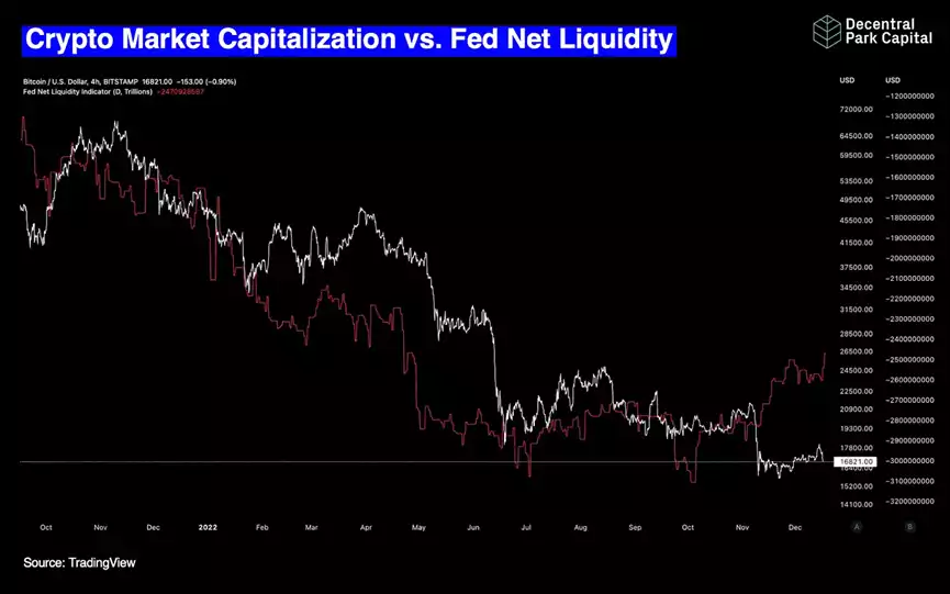 加密市场与净流动性之间的相关性令人吃惊,这意味着加密资产过去一年表现的一个关键驱动因素是市场流动性周期——至少在美国是这样。自去年 11 月以来的最近分歧反映了 FTX 对加密资产市场的影响。