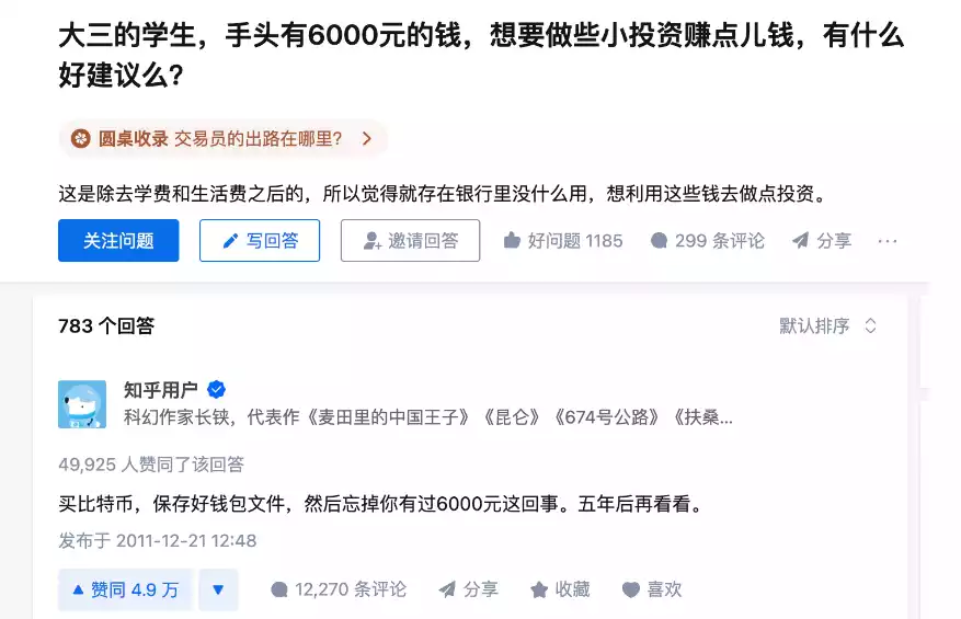 2011 年 12 月 21 日,巴比特创始人刘志鹏(长铗)发布了一条著名的投资建议评论,「买比特币,保存好钱包文件,然后忘掉你有过 6000 元这回事。五年后再看看。」