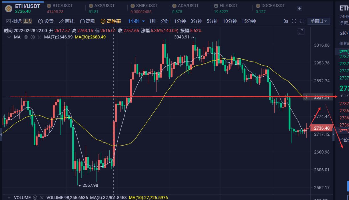 昨天一天市场直接快速下挫跌破下方低点支撑,不管是大饼的41500一线还是以太的2830-2800一线的区间支撑都有所跌破,短期内行情下跌空间较大,有可能趋势转空头了,需要注意风险的把控和方向。关注老刘的朋友都清楚,此次下跌我们虽说空间全部拿住了,但是我们之前一直强调的是看回落调整到这一区间,等行情跌至下方支撑位置附近之后再根据市场情绪考虑新一轮的布局,现在区间调整走出来并且有所破位,那么我们就该重新抉择方向了,好在该拿的区间利润我们没有错过。