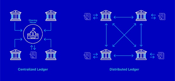 与传统账本技术不同的是,分布式账本技术使数据被去中心化管理,并形成一个区块链。