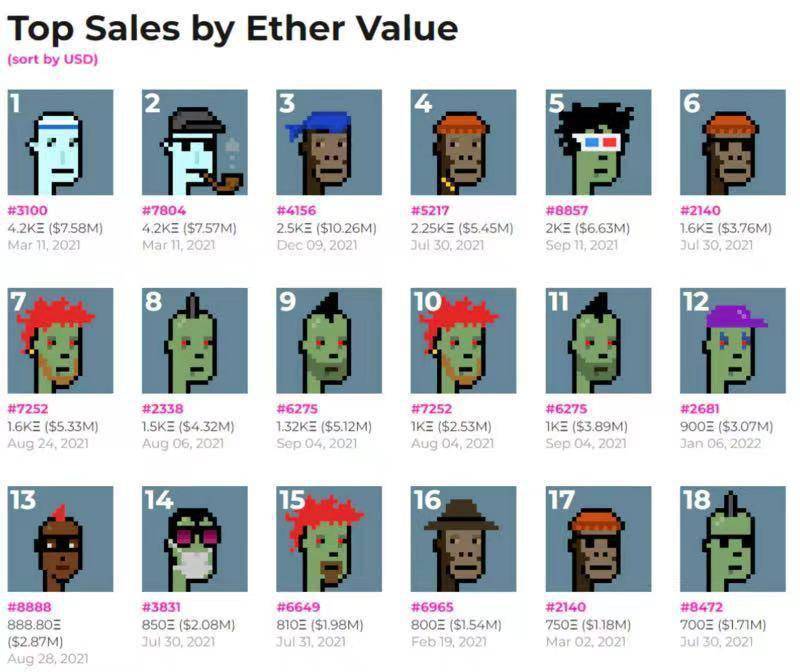 图3-4 机密朋克NFT价格排行榜,图源:Larva Labs 官网
