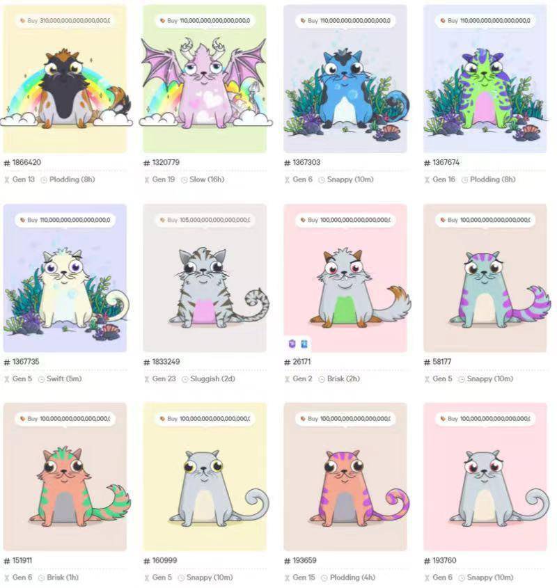 图3-5 以太猫的部分示例,图源:CryptoKitties 官网